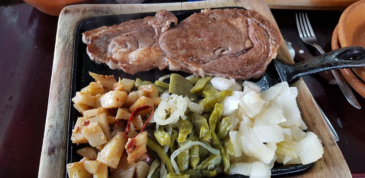 “Normally, I order chicken pozole; however, this time, I had to change my order. I had bistec tacos with cheese. The tacos were slightly larger than a normal tortilla and filled pretty well with meat, plus plenty of cheese. The sauce they brought made it even better. Really good food for a very good price.”
